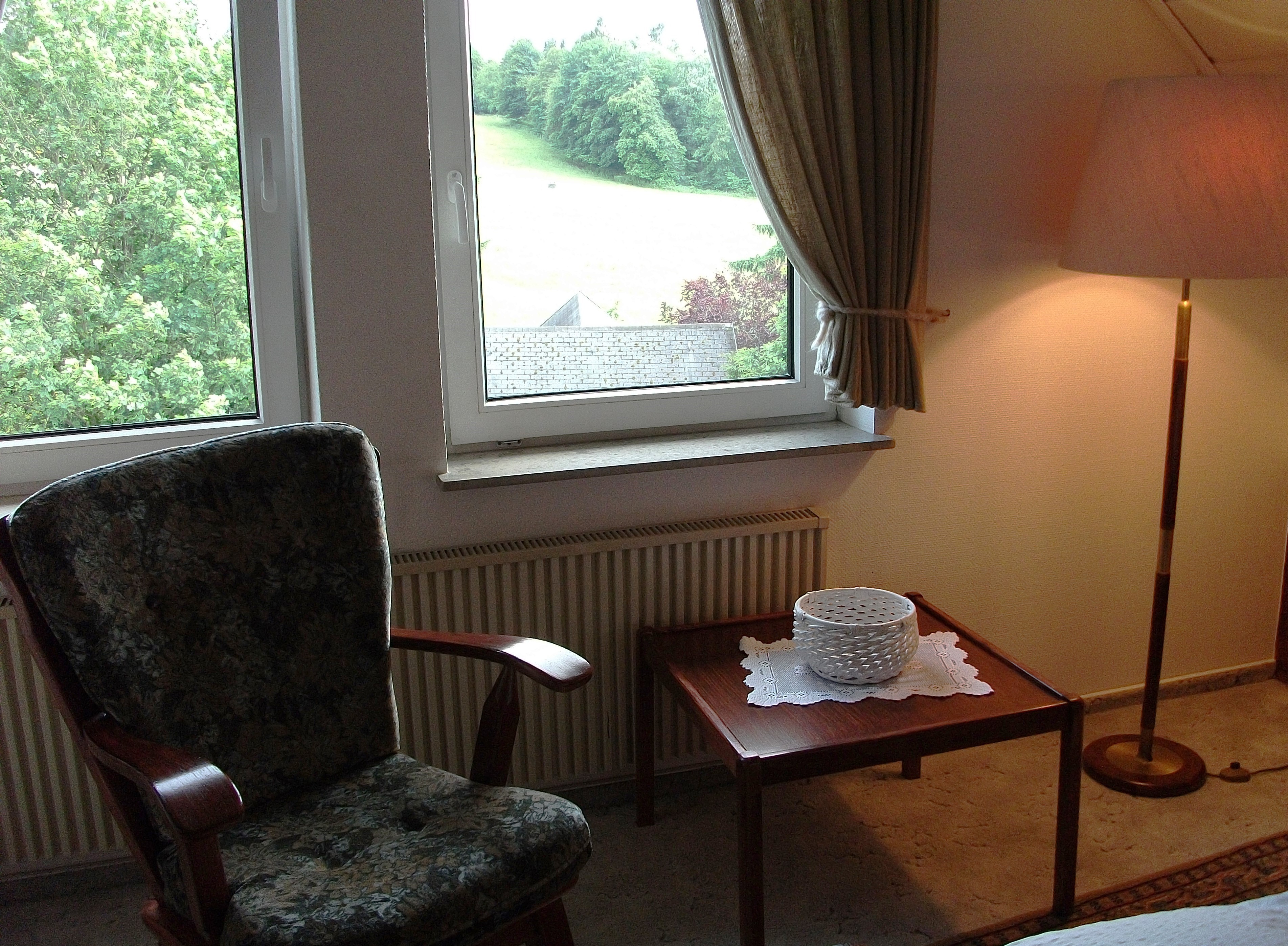 Vom Schlafzimmer aus haben Sie einen Blick nach Osten auf Weiden und Wald.